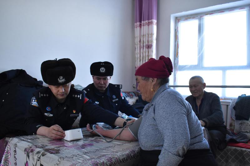 雪扫完了,民警却没急着走。有医护经验的民警从包里拿出血压计,拉过老人的手:“叔,趁着我们在,给您量个血压。”民警一边记录数值,一边轻声叮嘱:“高压有点高,最近是不是没按时吃药?药还有吗?”老人子女不在身边,天冷路滑,已经一个多月没量过血压了。民警从药箱里拿出降压药,用民族语言反复交代:“一天一次,不能断。下次我们再来检查。”