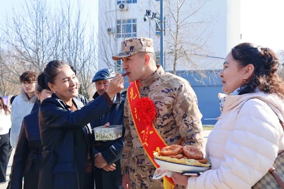 新兵阿依本.波拉提说:“我现在是一名大二在校生,能够光荣入伍,我要感谢国家,感谢我的父母,更要感谢我的曾祖父——在我牙牙学语时,他便在我耳畔不断讲述他的部队生涯,在我心中播下了军旅的种子。我渴望通过这次入伍,锤炼筋骨、增强本领,将来能够更好地保卫国家。”