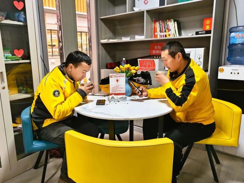 外卖小哥在“工会驿站”休息。喀什市融媒体中心 供图