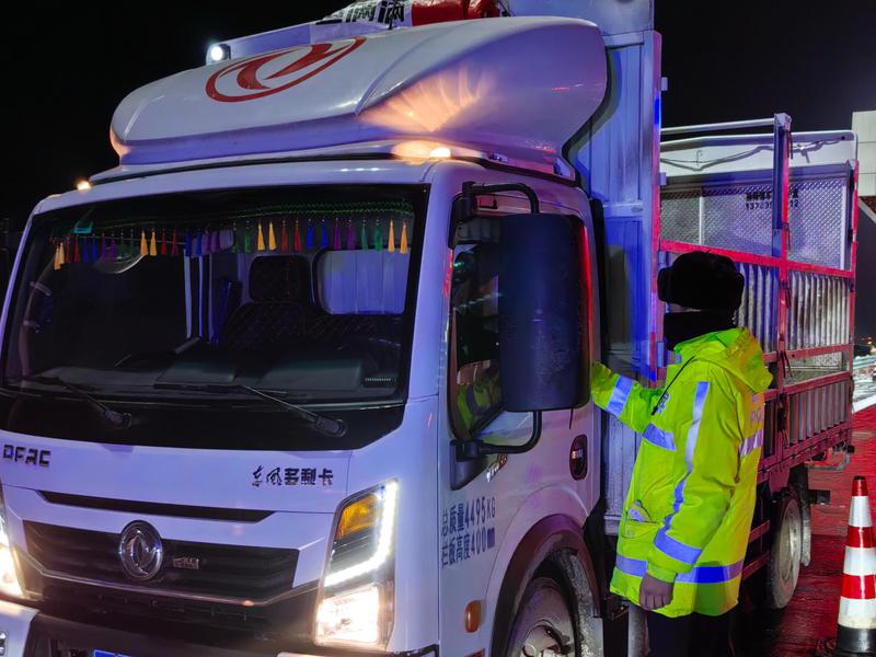 行动中,塔什布拉克交通服务站执勤民辅警紧盯辖区车辆通行关键节点,白天严查“隔夜酒”隐患,夜间紧盯重点车辆涉酒驾醉驾安全风险隐患点,坚持逢车必查、逢疑必检,做到力度不减、标准不降。通过定点设卡、逐车检查的方式,精准发力错峰管控。清晨重点针对“隔夜酒”,在进昭主干道设置检查点,严查隔夜酒驾、疲劳驾驶等违法行为,切实消除清晨时段安全隐患。夜间,聚焦进出昭大货车,使用酒精检测仪对驾驶人进行精准快速检测,做到不漏一车、不漏一人,严格检查,坚决守住夜间行车安全关。