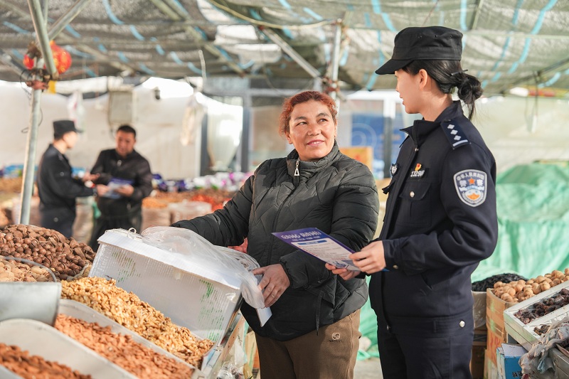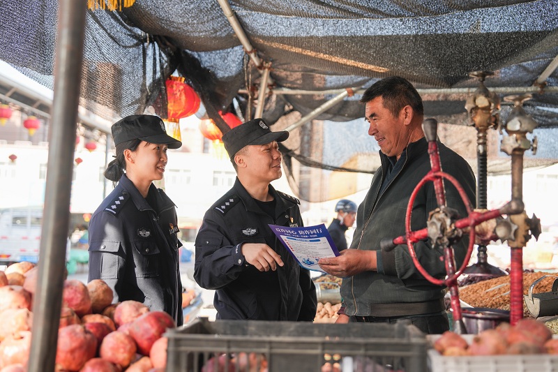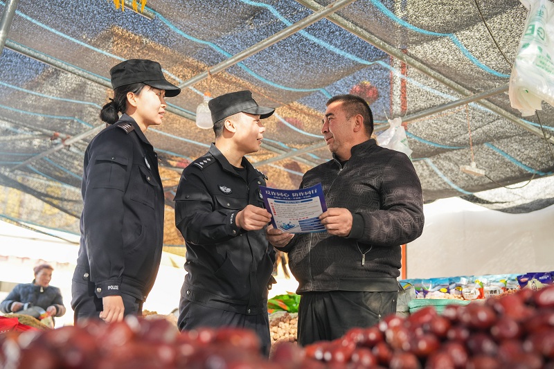 2026年3月17日,乌鲁木齐铁路公安局哈密公安处刑侦支队联合政保支队民警走进辖区农贸集市,开展防范电信诈骗主题宣传活动,将反诈知识送到百姓身边,守护好群众的“钱袋子”。