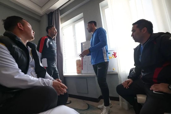 训练场上,他时刻关注着球员的状态。一旦球员出现传球失误、跑位偏差,他都会立刻上前示范指导,在严格把控训练强度的同时,兼顾球员的身体状态与承受能力。训练结束后,他都会撰写当日的训练总结,晚上还要和教练组复盘当日的训练情况。对于连续表现不佳的球员,他会通过安排实战对抗来观察其技术特点,明确球员在训练与比赛中的不同状态与适配场景,再做出针对性的调整。“球员有能力却被放错适配位置太可惜了,我们不想失去任何一个好苗子。”吐拉江说。