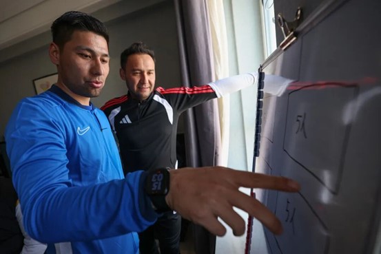 为了更好地执教博州队,吐拉江专门邀请了拥有100余场中超联赛出场经历的前河南建业足球俱乐部功勋球员阿布都外力·阿布来提加入教练组,担任执行教练。同时,教练组聘请了两名本地教练,与外来教练团队共同组成教练班子,带队训练、打磨球员技术。他们融合了丰富的职业赛场经验,让球队的训练体系更专业、更贴近实战。