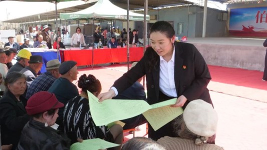 发放各类政策宣传单。祖力皮卡尔·吐尔地 摄