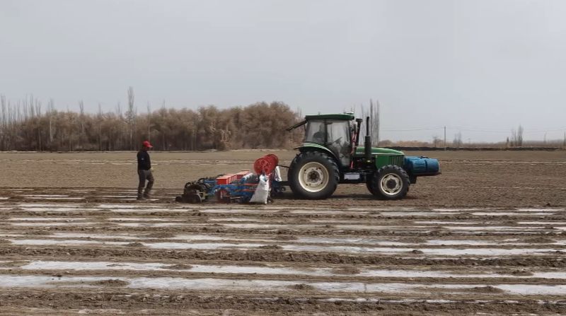 麦盖提县希依提墩乡东风村村民伊力哈木·艾山说道:“今年,农机政策太实惠了,我买了这台北斗导航播种机,算上补贴,省了近三分之一的钱,作业效率还翻了倍。以前几十亩地开展春播作业要忙活好几天,现在用北斗导航播种机半天就可以搞定,播种又直又匀,我们种地越来越轻松了。”