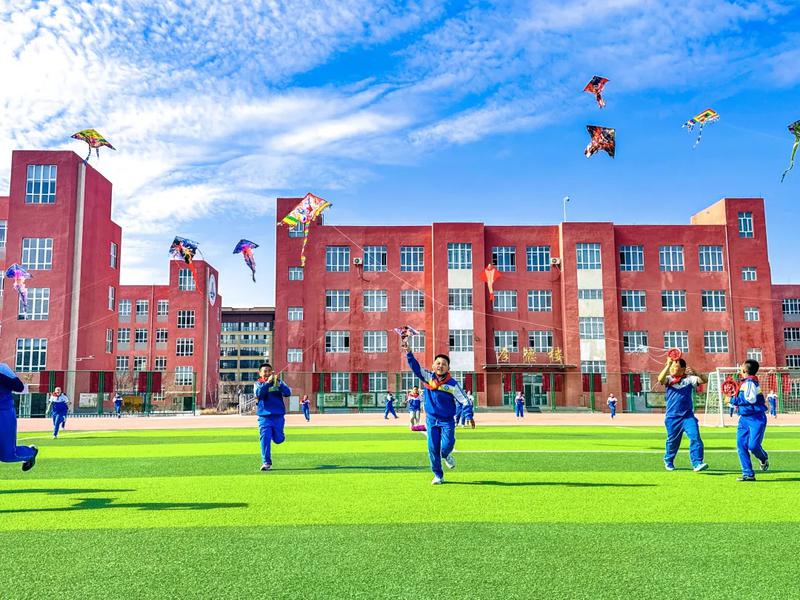 孩子们在操场上放飞风筝。春风送暖,纸鸢翩飞。4月1日,精河县第二中学开展“春风逐纸鸢 童心向未来”放风筝主题活动,师生齐聚操场,共赴一场与春风相伴、与梦想同行的春日之约。