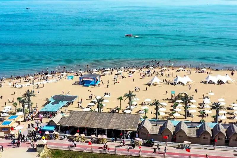 百米长廊上的美食区香气四溢,烤鱼、烤肉、抓饭吸引游客们驻足品尝。西海沙浪娱乐区快艇劈波斩浪、游轮缓缓行驶。孩子们在家长的陪伴下参与沙滩寻宝、沙画等娱乐项目,欢声笑语此起彼伏。