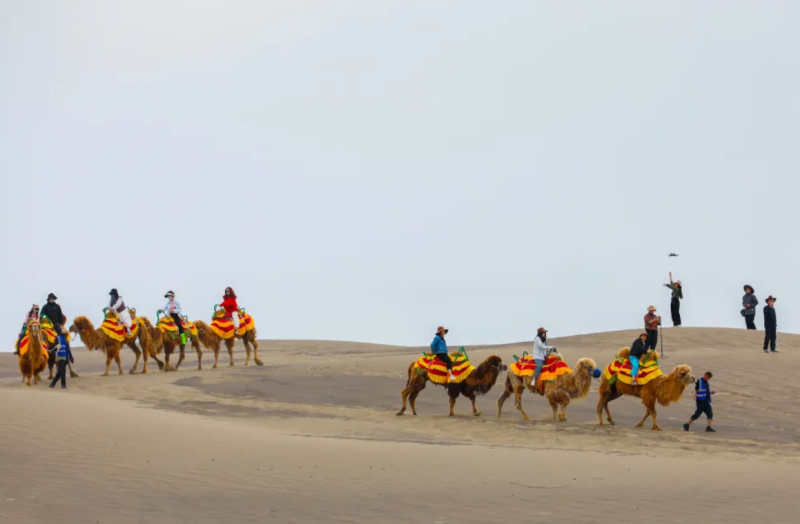 游客李新立说:“国庆假期专门带着家人来玩,这边沙漠风景特别好,爬沙比赛也有意思,孩子玩得不想走,我们一家人都特别尽兴。”