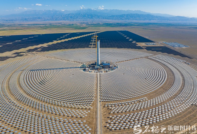 9月18日,鲁能阜康市多能互补项目10万千瓦光热工程施工现场。何龙 摄