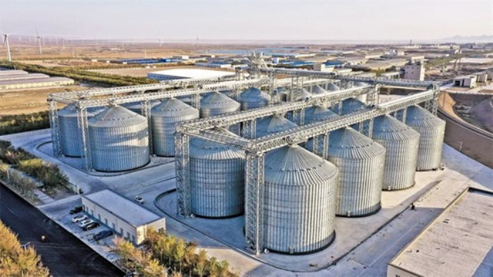 俯瞰阿拉山口综合保税区粮食现代物流中心(资料图)。