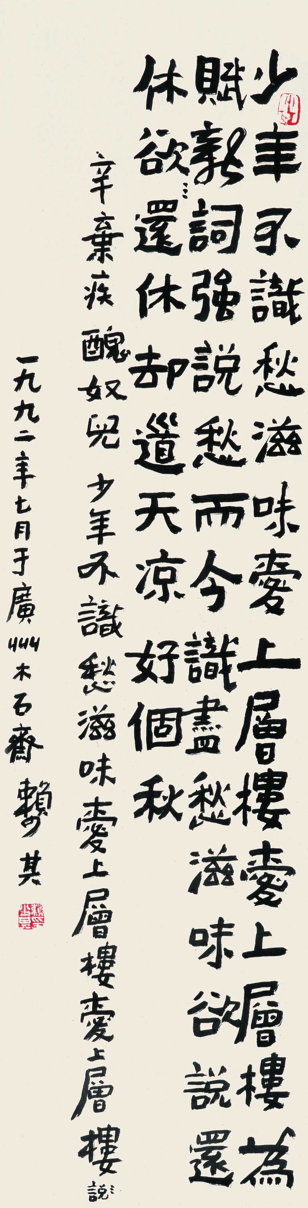 赖少其先生是当代书画艺术大师,中国新兴版画运动创始人之一。作为一名艺术家,他在版画、国画、书法、篆刻、诗文等众多领域建树非凡、成就卓越;作为一名文艺界领导,他对建国后的中国文化事业发展作出了重要贡献;作为一名革命者,他更是对国家和民族倾注了满腔热情。在其六十多年风雷激荡的革命与创作岁月里,他的艺术是和波澜壮阔的人民解放事业、社会主义建设事业紧密相连的,他的作品具有很强的民族性、大众性和时代性。赖少其先生高超的艺术成就、博大的家国情怀令人钦佩,在当下推进中华民族伟大复兴的新时代,具有十分鲜活的艺术生命力和强大的精神感召力。