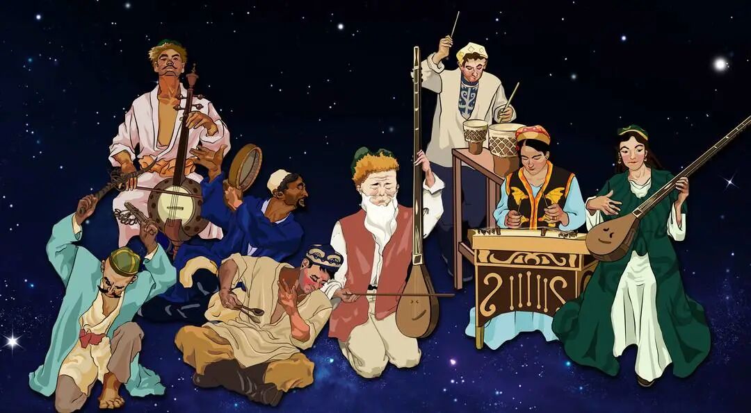 十二木卡姆交互墙:作品艺术形象来自于新疆艺术家哈孜·艾买提的《木卡姆》油画,这幅艺术作品和它所表达的主题源于“十二木卡姆”古典编曲本身。交互墙让画中人动起来,音乐的艺术在视觉艺术中穿梭,与画中人一起感受木卡姆的欢乐。