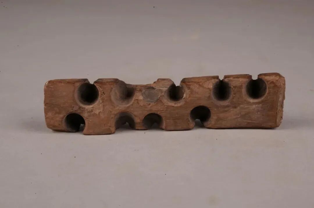 钻木取火器,在鄯善洋海墓地、且末扎滚鲁克墓地、尼雅遗址等都有发现,出土总数达60余件。新疆出土的取火工具种类繁多,从出土取火工具来看,取火主要都是用木板和木钻相配套来制取火种,而且这种取火工具形制规整,选料考究,一般取火板(母棒)的木质较软,而木钻的木质则比较硬,取火器的形制有明显的预制性,且具备材料易得、制作简单、便于携带、取火方便、取火效率高等诸多特点。