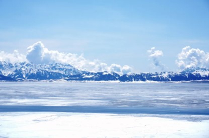 赛里木湖冬景。