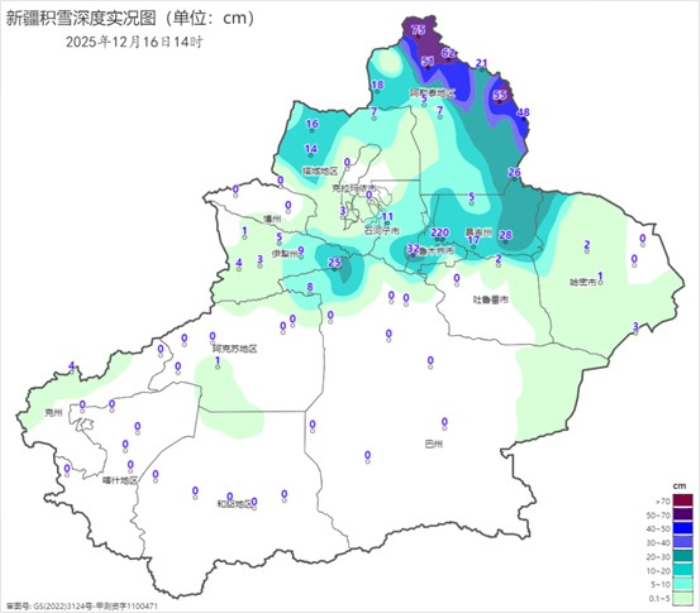 新疆积雪深度实况图。来源:博州气象台