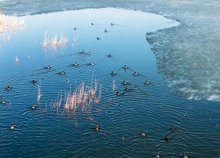 演绎着早春的浪漫——冰花碎裂 湖水苏醒