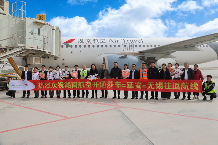 此次新开的无锡—延安—莎车航线由湖南航空A320机型执飞,去程航班号A67321,08:05从无锡硕放机场起飞,经停延安南泥湾机场后,抵达莎车机场;返程航班号A67322,16:00从莎车起飞,经停延安后,23:35抵达无锡,全程飞行时长大幅缩短,彻底打破以往三地出行中转繁琐、耗时较长的困境,实现江南、陕北、南疆三地空中快速通达。
