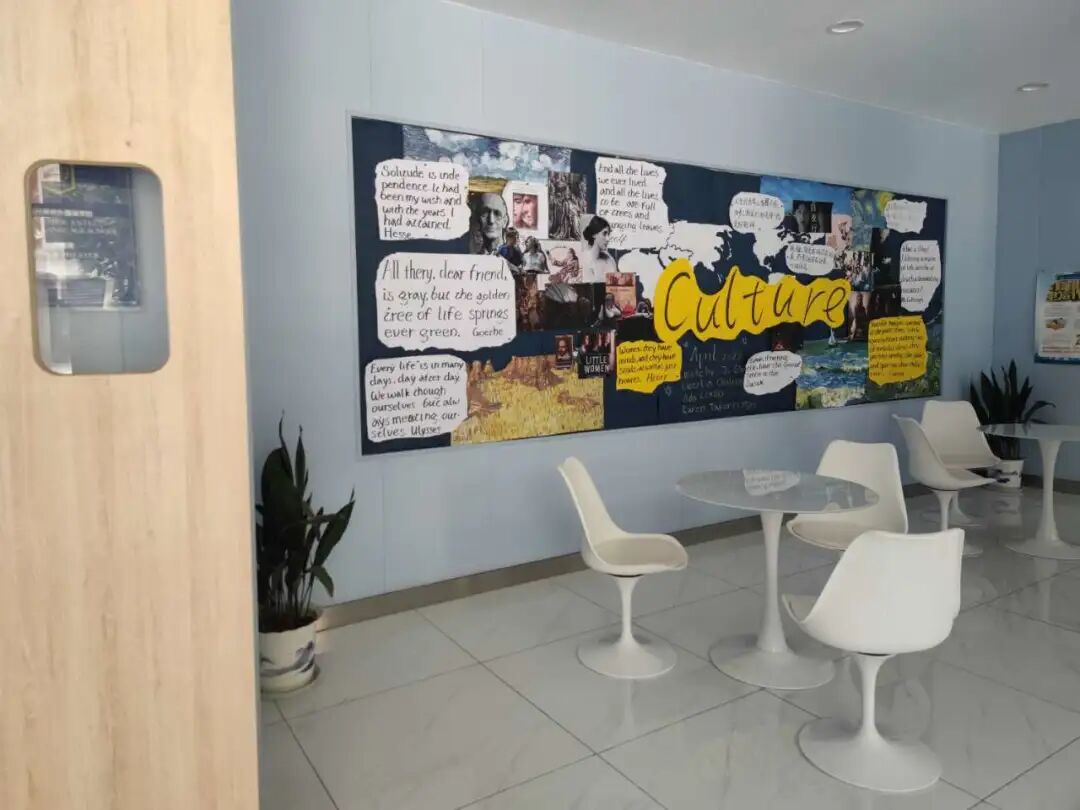 杭州英特外国语学校是一所九年一贯制学校,位于杭州余杭区。小学组的25名阿克苏市老师来到英特外国语学校的小学部。每一处走廊,每一个过道,每一个弯转角,都张贴着孩子们的作品,图文并茂,意趣飞扬,校园文化处处皆在。英特外国语学校的语文教师陈舒畅和龚农兵作了《祖先的摇篮》、《精卫填海》章节的课堂展示。在课堂中,两位老师都十分重视学生语文核心素养的提升,完整体现了英特学校的教学理念:坚持因才施教,为每一位学生的个性化成长赋能。从《祖先的摇篮》中的自编小诗到《精卫填海》拓展课中尝试用“文言文+图”的方法来创作,无一不体现出老师对学生个体和差异的尊重与包容,课堂中,学生展现了敢想敢说、和而不同的自信气质,让阿克苏老师们耳目一新。