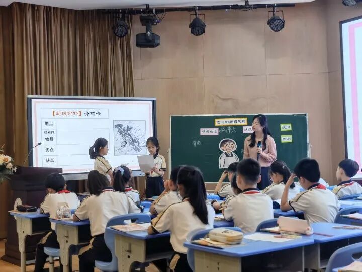 紧接着,季靖雅老师执教的《佐贺的超级阿嬷》阅读展示课,从“超级”一词入手,通过让学生猜测人物的“超级”之处让学生自己提问,进行细致观察,然后通过联结时代背景聚焦当时作者生活的年代,让学生了解这本书背后的故事。同时借助图片充分利用封面引导学生阅读时可以借助插图进行预测,又通过出示阅读考试与成绩单片段,阅读走路赚钱与超级市场片段,让学生能充分感受到“阿嬷的超级语录和妙招”。教学环节环环相扣,渗透的阅读策略引导学生在实践中习得方法,并通过课外作业加以巩固提升,锻炼了学生的有效阅读能力。
