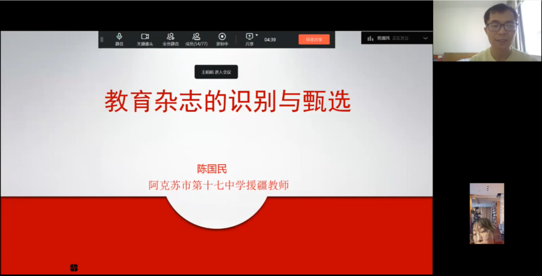 12月16日,杭阿美好教育钱塘•多浪科研工作室领衔人、阿克苏市第十七中学援疆教师陈国民为阿克苏市第十七中学全体教师作了主题为《教育杂志的识别与甄选》的专题讲座。