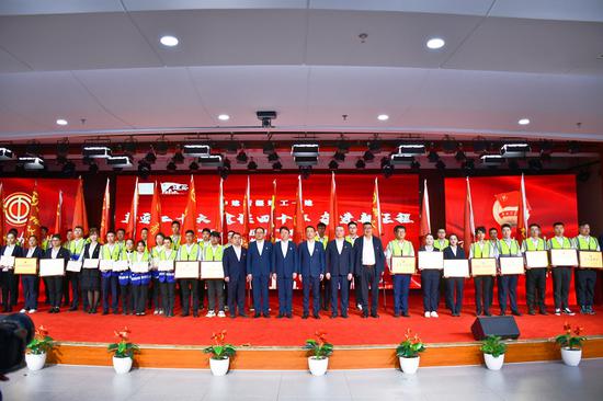 表彰会上,一建党委书记、董事长陈刚为建工劳动模范宋勇、杜长伟,公司劳动模范史苗苗送上鲜花,希望广大职工以劳模为榜样,爱岗敬业、恪尽职守,为实现公司高质高效发展作出新的更大的贡献。