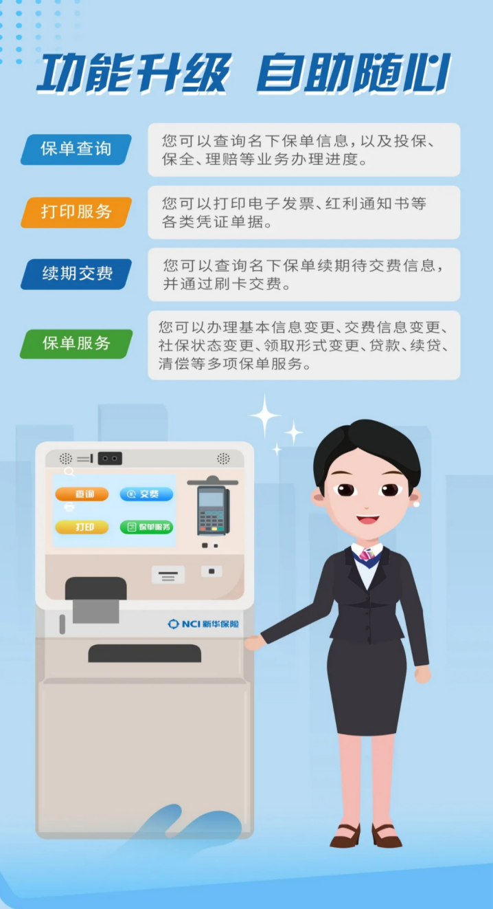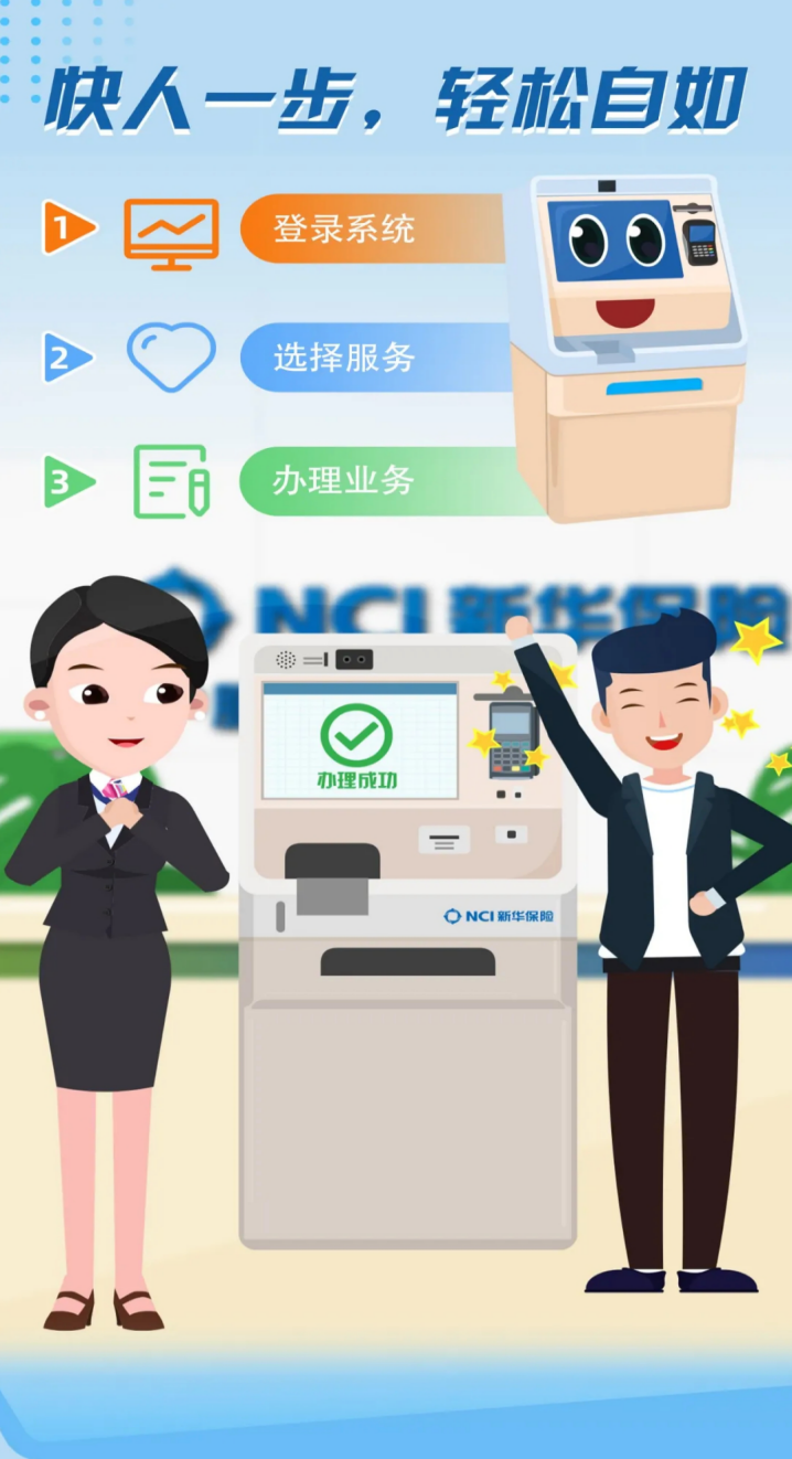 为提升服务体验,满足客户需求,新华保险推出的智慧柜员机可为客户提供多项自助服务,形成“智能+人工”的双在线柜面服务新模式。新华保险新疆分公司智慧柜员机实现重点柜面全面覆盖,服务效率和客户体验显著提升。
