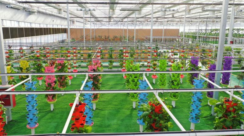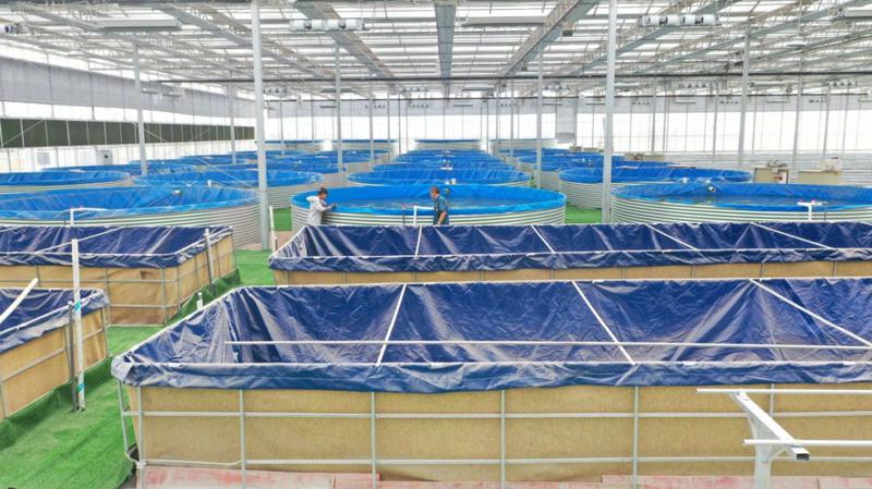 驱车至柯坪县城西南5公里处,绿色戈壁设施农业产业园的景象令人瞩目:250座银白色新型日光温室大棚在阳光下熠熠生辉,棚内西红柿挂满枝头、黄瓜脆嫩欲滴、豇豆藤蔓舒展,一派丰收在望的喜人景致;养殖池里,罗氏沼虾体形饱满,大闸蟹正奋力蜕壳,鲜活灵动。谁能想到,这片生机盎然的土地,数年前还是寸草难生的戈壁荒滩。