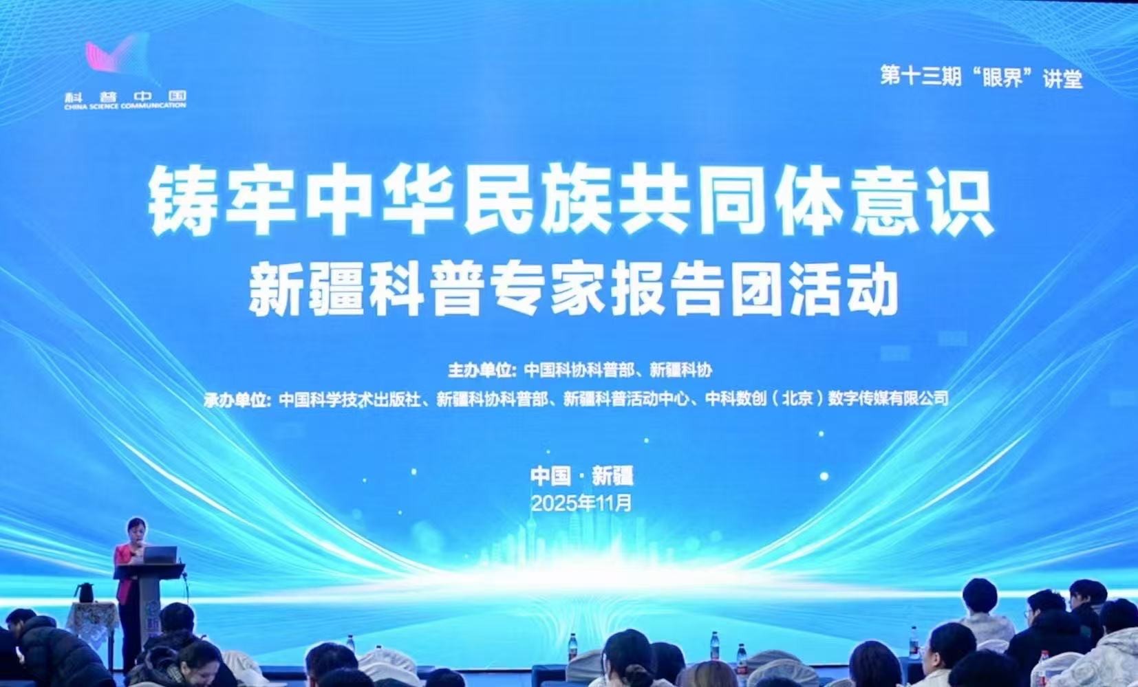 11月17日,由中国科协科普部、新疆维吾尔自治区科协共同主办的“铸牢中华民族共同体意识”新疆科普专家报告团活动暨2025年第十三期“眼界”讲堂在新疆科协会堂举办。