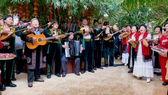 基层的新春舞台上,自发组建的托里县库普乡芭芭拉沙孜乐队正用音乐传递团结力量。这支起源于村队的民间队伍,汇聚了汉族、蒙古族、哈萨克族等多个民族的成员,既有农民也有退休教师,大家因热爱聚在一起,13年来始终如一地走村入户表演。演出中,冬不拉、二胡、吉他、手风琴等不同民族的乐器巧妙融合,碰撞出独特韵律,把惠民政策、新时代发展故事编成通俗弹唱。80岁高龄的乐团队长依扎提·哈力说,他们年均开展10—15场公益演出,还将内容录制成“音频唱片”,让多元文化交融的旋律,成为凝聚民族情感、传递政策暖意的纽带,生动诠释了“各民族像石榴籽一样紧紧抱在一起”的深刻内涵。