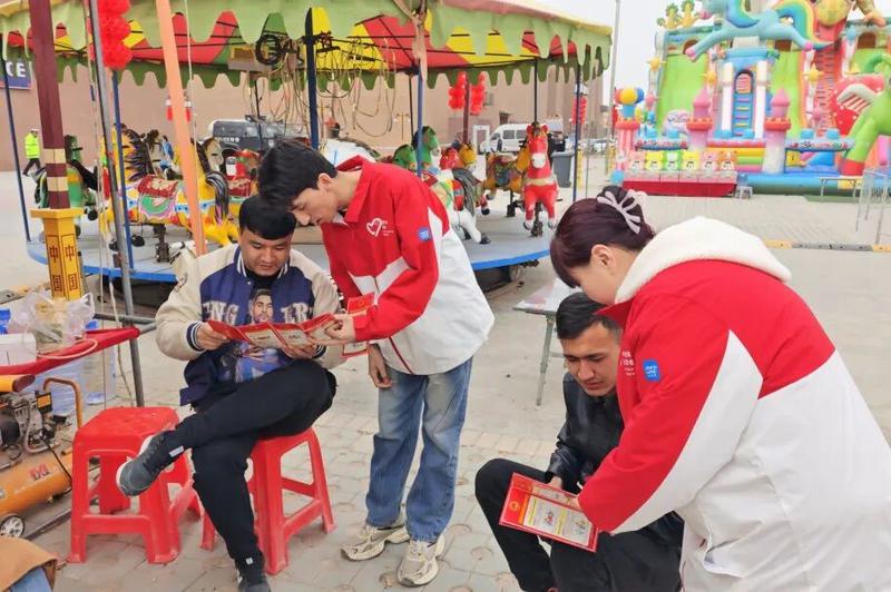 “活力绽放” 粉色健康队聚焦群众健康需求,走进巴扎开展志愿服务。医疗领域青年志愿者为群众免费测血压、血糖,提供常见病咨询、用药指导与养生建议,还通过宣传折页、现场宣讲普及急救知识、慢性病预防及心理健康常识,将专业贴心的健康服务送到群众身边。