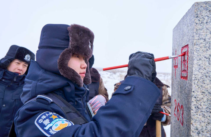 中新网新疆新闻3月6日电(汪许东 达尔汗)“三八”国际劳动妇女节即将到来,托里县戈壁铁娘子女子戍边队的队员们在263界碑前开展界碑描红活动,她们将誓言用笔写在界碑上,更把青春与坚守写在了边境线上。