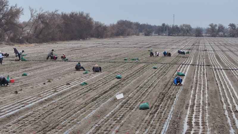人勤春来早,春耕正当时。近日,随着气温回升,托克逊县郭勒布依乡抢抓农时、及早部署,全面拉开春耕生产序幕。在奥依曼布拉克村,近1000亩洋葱种植工作正有条不紊推进,田间地头一派繁忙景象,为今年农业生产和群众增收开好头、起好步。