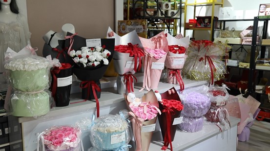 “近两日已经陆续接到不少订单,既有个人购买用于赠送亲友,也有不少团体订单,销量十分可观。”吴晓婷补充道,除了各类花束,店铺还精心准备了伴手礼,为顾客提供多样化的选择,进一步丰富节日消费场景。