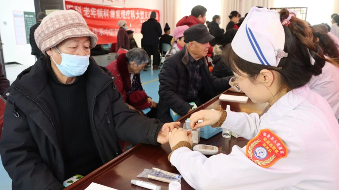 义诊区域同样热闹非凡。综合外科与中医康复科专家团队强强联手,现场开展外科、妇科义诊和中医把脉问诊。专家们耐心细致地询问病史、查看检查报告,并为群众提供个性化的诊疗方案。与此同时,针对老年群体关注的骨骼健康问题,医护人员现场为老人们进行了骨密度测量,并同步提供血糖血压检测服务。志愿者们在现场全程引导,贴心服务,让居民在家门口就能享受到县级医院的优质医疗资源。