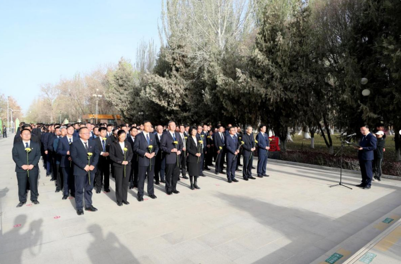 4月4日上午,塔里木大学在红色文化广场举行向王震将军铜像敬献花篮仪式。