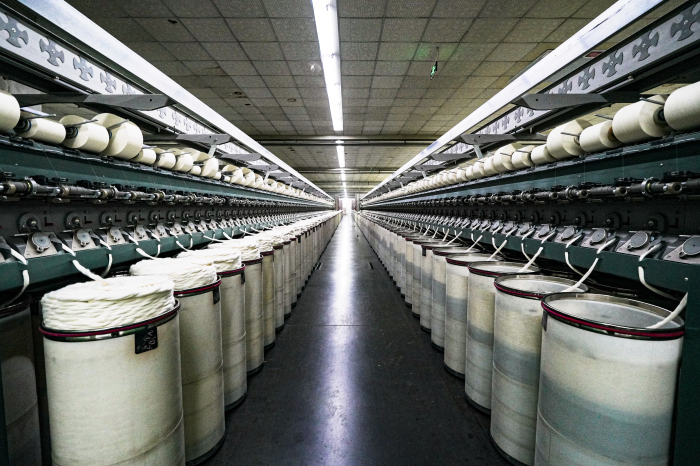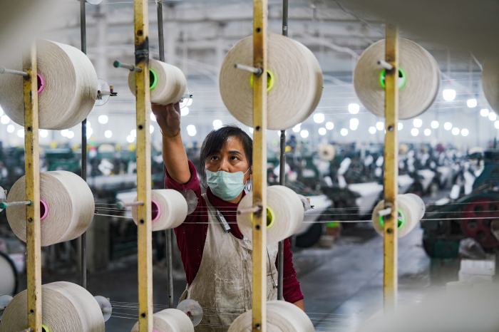 3月10日,呼图壁县云龙棉业集团有限公司纺纱车间,工人正在作业。 常谊谊 摄