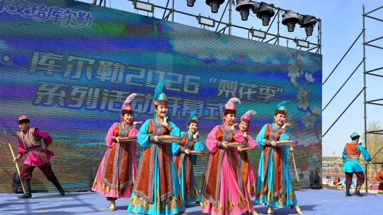 文艺演出环节,尉犁县精心编排的特色节目《两村对歌》惊艳登场,12名演员身着绚丽服饰,踏着春日节拍,用嘹亮的歌声、欢快的舞姿展现尉犁多民族文化交融的独特魅力。原汁原味的罗布风情与梨花季的春日美景相融相映,与主会场的管弦乐展演、诗歌民谣音乐会交织共鸣,成为“梨花季”舞台上一抹亮丽的色彩。尉犁县文体广旅局副局长阿衣古再丽?依明表示:“库尔勒‘梨花季’是巴州春季文旅的重要聚客平台,也是促进各民族文化交流、情感交融、思想交心的重要纽带。我们以梨花为媒,把尉犁的文旅特色带到梨城舞台,不仅让‘塔罗秘境·烽燧尉犁’品牌走出巴州,也助力中华民族共同体意识深入人心。尉犁罗布人民俗烧烤季在即,欢迎大家来尉犁赏美景、品文化、观展演、吃美食,我们将持续深挖‘三罗’文化内涵,打造更多精品线路,完善旅游服务配套,以更优质的文旅产品迎接八方游客。”