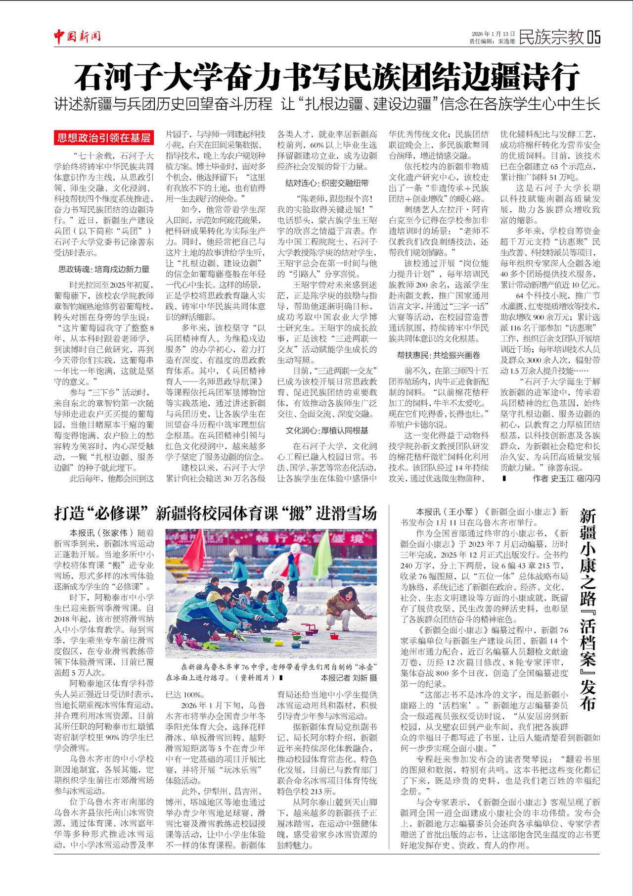 石河子大学奋力书写民族团结边疆诗行 打造“必修课” 新疆将校园体育课“搬”进滑雪场 新疆小康之路『活档案』发布