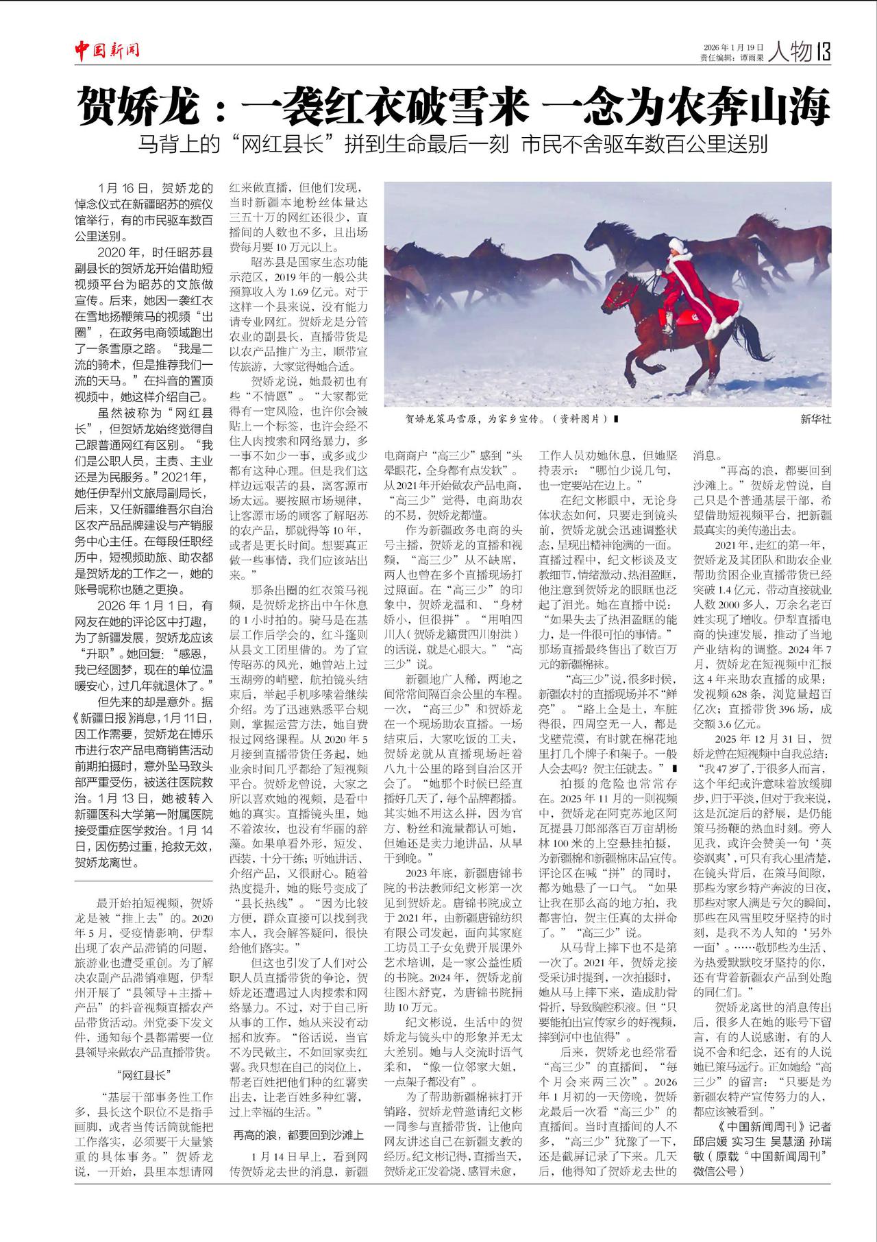 贺娇龙:一袭红衣破雪来 一念为农奔山海
