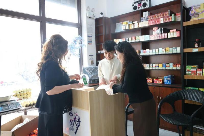 依木然(中)为顾客结账。靳蒙蒙 摄